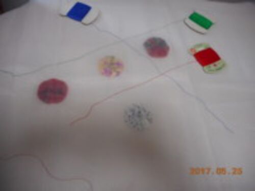 写真はMTMRさんの遮光ブラインド構想 巻き取り式を残す方法 考え中 生成り布 オーガンジーを裁断 ヨーヨーを並べて実際に近づけて ステッチの色など決めましょう 〜お休み 6/1は休みます〜 〜〜〜〜〜〜〜〜〜〜〜〜〜〜〜 〜教室 6/3(土曜)pm2〜5オ…