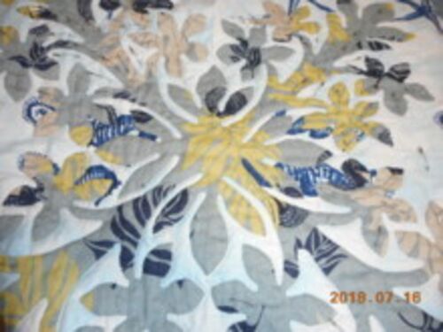 プルメリア部分のキルティング 落としキルトから(7/16写真) 縦まつりの時からアップリケ布 ザックリ厚地で 細かく深く手間取りました キルティングに進み 厚地(土台布も)で 大変かと思いましたが〜 思いのほかスムーズ しかし 50cm円外辺りから アップリ…