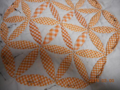 オレンジピール円座カバーキルティング中 カーブは細かめに進めます ーーーーーーーーーーーーーーーーーーーーーーーーー 本日 am1名(TNDさん) pm3名(TKOKさん*YMHTさん*KWKMさん) ーーーーーーーーーーーーーーーーーーーーーーーー 教室 3/16(土)pm…