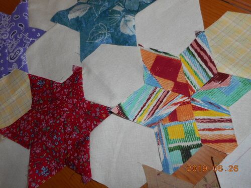写真はMURさんのシックスポインテッドスターとヘキサゴンのつなぎ=さまざまな布で沢山準備=進んでいます 本日=am0pm2名(TKOKさん*YMHTさん) ~~~ご安全にお越し下さい~ 教室 7/13(土)pm2~5=2名 教室 7/17(水) 7/18(木) 7/20(土) ↑2名 ↑am1pm1 ↑0 ~~オープ…