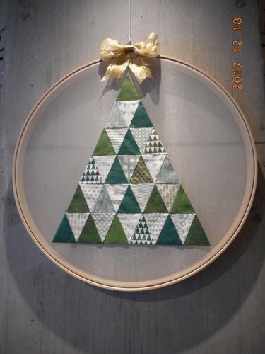 写真はTKDさんの展示用=三角形つなぎでツリー=オーガンジーを使いフープを額に展示されました~布の染めもされ少し堅くなりつなぎは大変だったかと! ~~~~~ 医療従事者に感謝して自粛生活続けます 長い自粛生活次々に凸凹が起こります とても気を使わ…