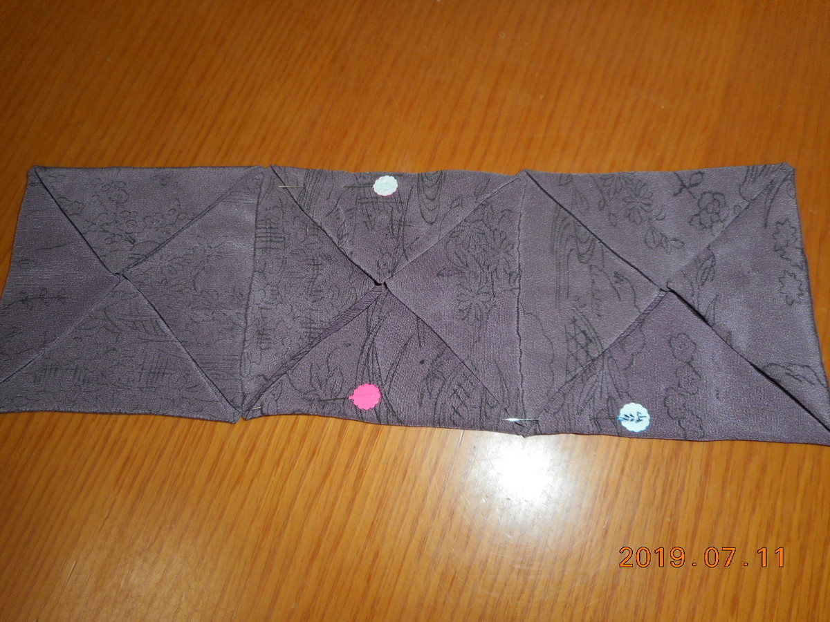 わたくし=マチ+ポケット裁断=仕立て準備中+マチにスマホも入るポケットにしました=大きめになりそうです