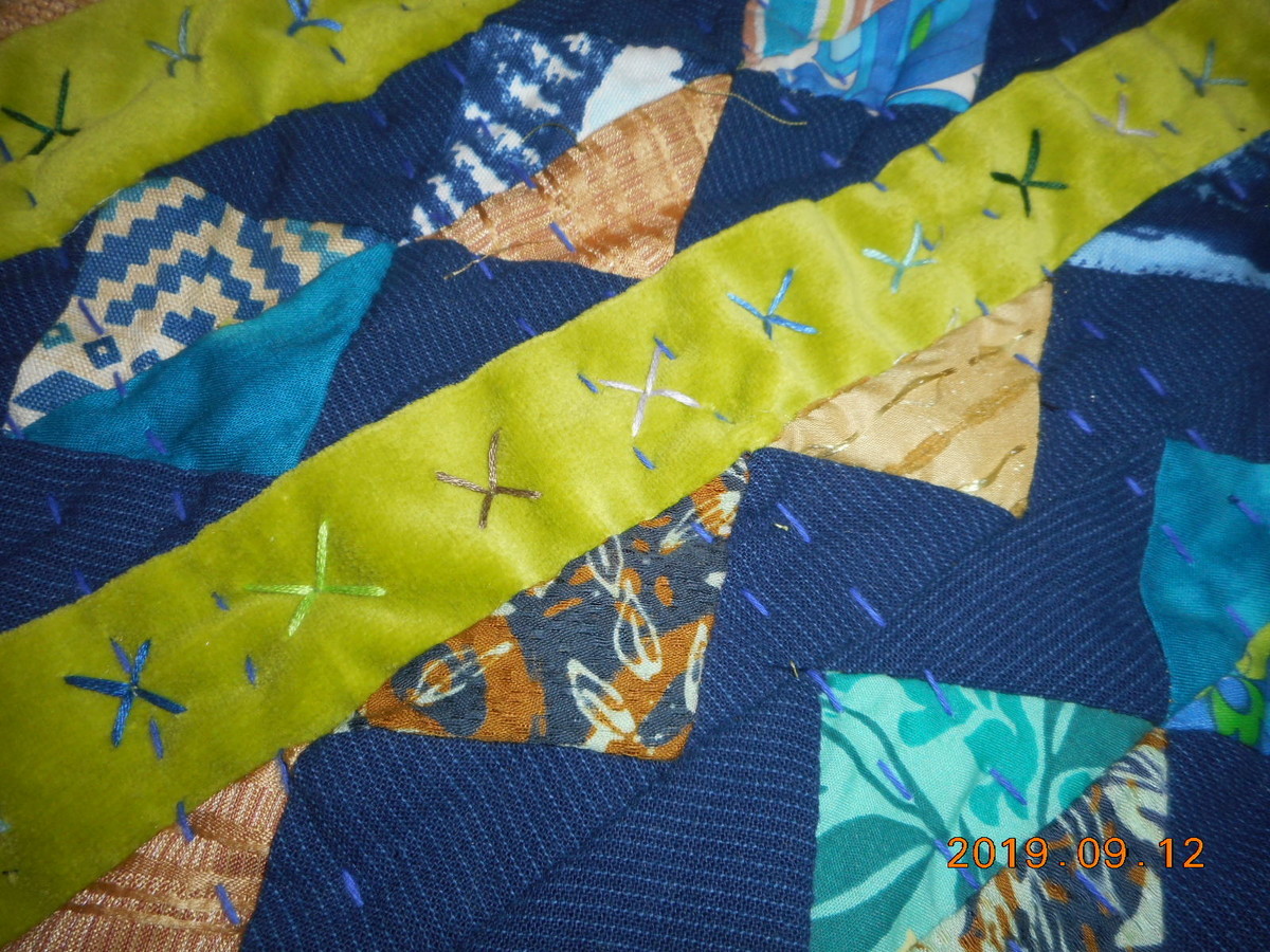 2019-09-27 癒しへ^^^^ 写真はUMKWさんのベルベット等使ったマット=刺繍糸のクロス刺し子糸のステッチでキルティング 教室 9/28(土)pm2~5オープン予定です ↑0に変更 教室 10/2(水) 10/3(木) 10/5(土) ↑3 名 ↑am1pm0 ↑1名 ~~~オープン予定です~ 皆さまのお越しをお待ちしています! わたくし=ハワイアンキルト=プロティアのウェーブキルト1周目完成し2周目ライン記入しました パッチワーク大好き