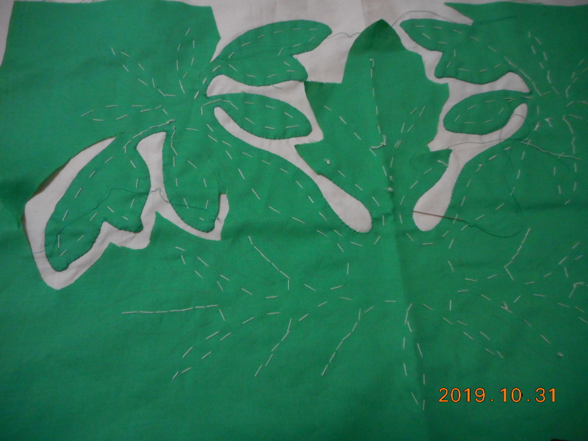 写真はKUYMさんのハワイアンキルト=マンゴー縦まつり順調に進まれています~コーヒーメーカーのカバー予定です~