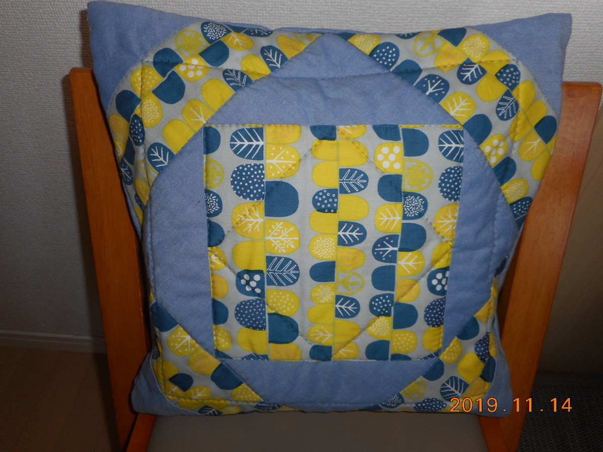 写真はSNSWさんの40cmクッションカバー2作目完成していますオリジナルのつなぎ+キルティングラインです