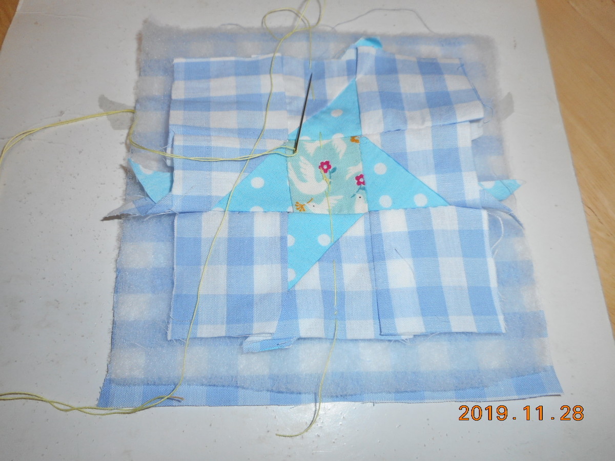 写真はSKTさんのピンクッションつなぎ=キルティングへ進まれました~初めてのキルティングです