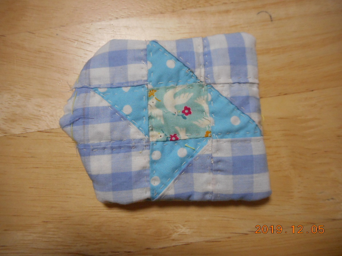 写真はSKTさんのピンクッション~キルティング後仕立てへ=手縫いなのでシッカリ全返し縫いです