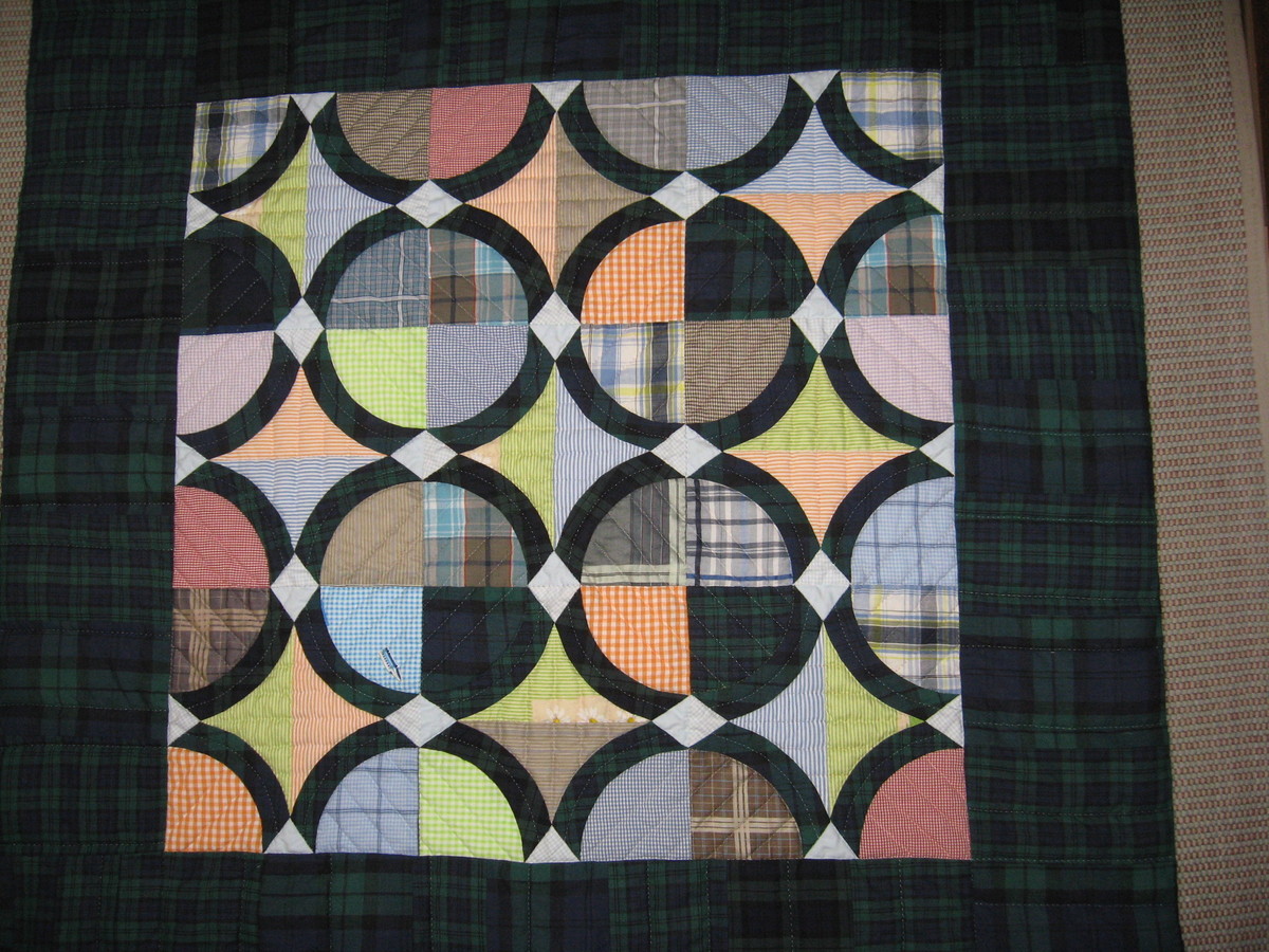 オレゴントレイル?1m角くらいのキルトです=わたくし自身のベッドカバーを昔に考えたパターンです=チェック大好き