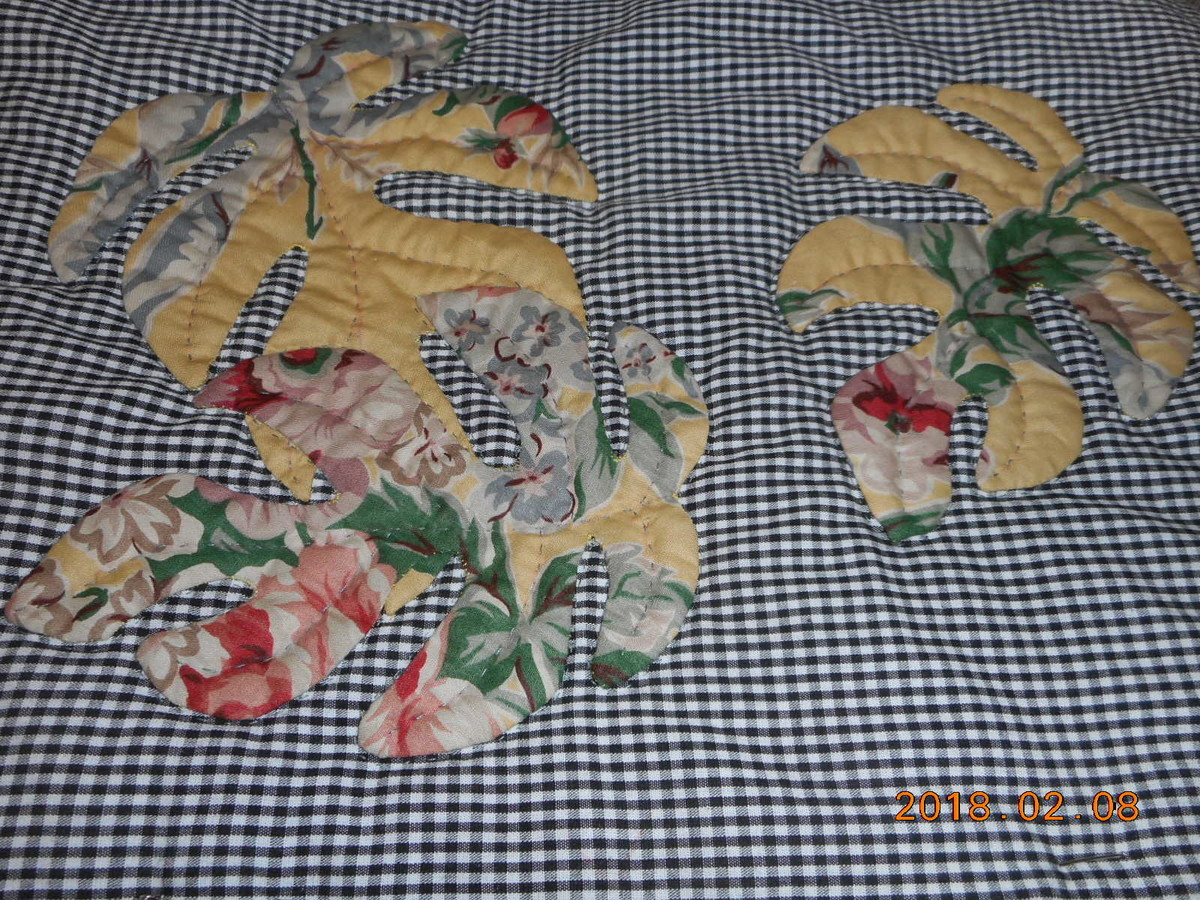 写真はTKOKさんの?ハワイアンキルト=姫モンステラ~バックに仕立てされました