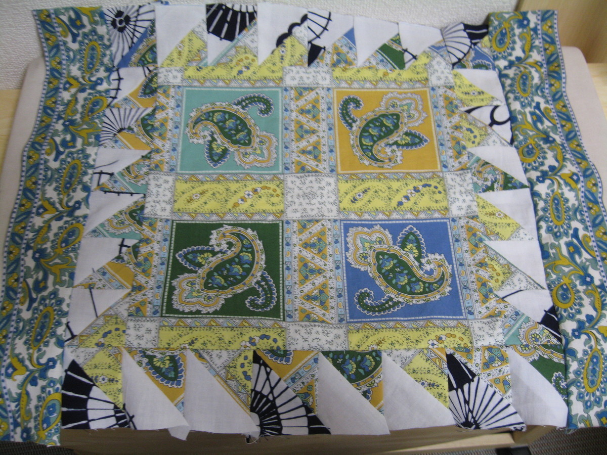 2021-02-12 心穏やかに過ごせますように! ホットカーペットカバー3作目の始まり=模様を活かしたり三角つなぎが基本で進めました ~~~~ 医療従事者に感謝して自粛生活続けます もう少し少なくなる日が来るのかな? 毎日が心配ばかりです ~~~~ 散歩コースも歩き易さを求めて変更 サポーターもとりあえず止めてます 台所など長く立つのが苦手~ パッチワーク=ハワイアンキルト=ナウパカの花弁キルティングは順調でもう少しです また、体調が~~ストレス+座り仕事