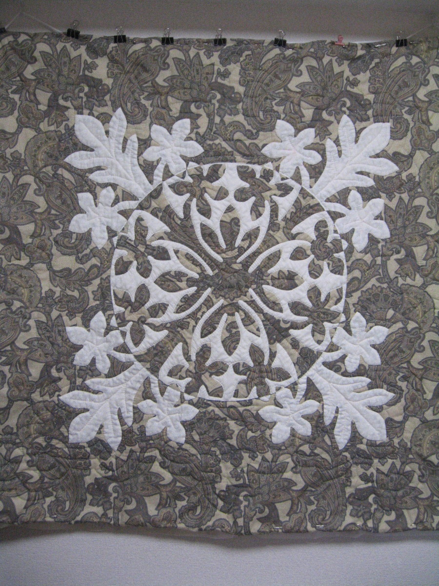 2021-10-09 教室再開はありません ハワイアンキルト=プルメリア2作目~中央50cm円位と外側で土台布とアップリケ布を変えました=周りはパイピング無しの仕立てです ~~~~~ 医療従事者に感謝して感染対策続けます どうなる事やら中々難しい 状況説明は難しい ~~~~~ 昨日のブログ2つは確認しているのですが落ち着かずに消すと2つ共消えたくないので当分このままに! 何だかだ上手く行かない時に~又~ せめて体調をキープせねば~ と言っても~地震はこわい