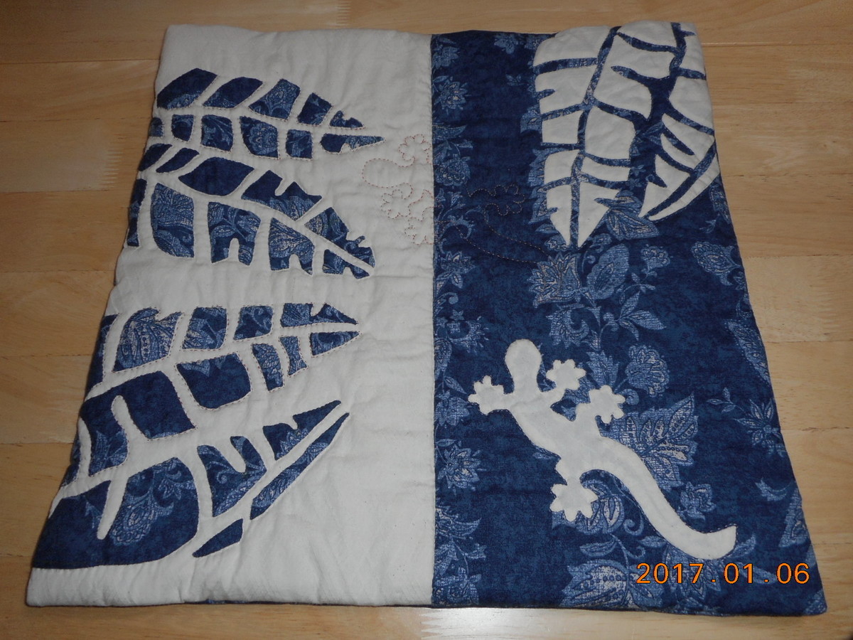 ハワイアンキルト=バナナの葉とゲットー?~紺の布は昨日と同じです