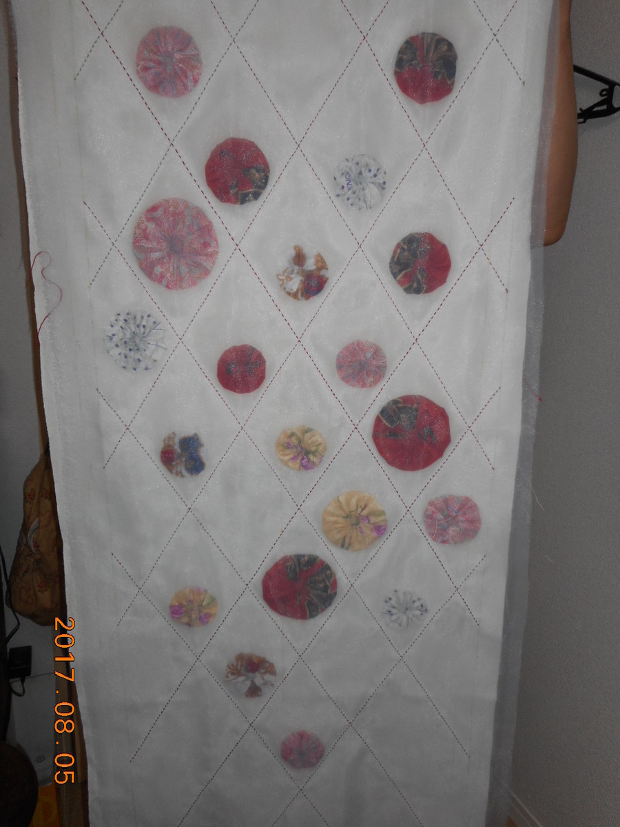 写真はMTMRさんの遮光スクリーン=キナリとオーガンジーの間にヨーヨーキルトを挟み込み~丁寧に構想され丁寧に仕上がりました(今日も無事に書けました)