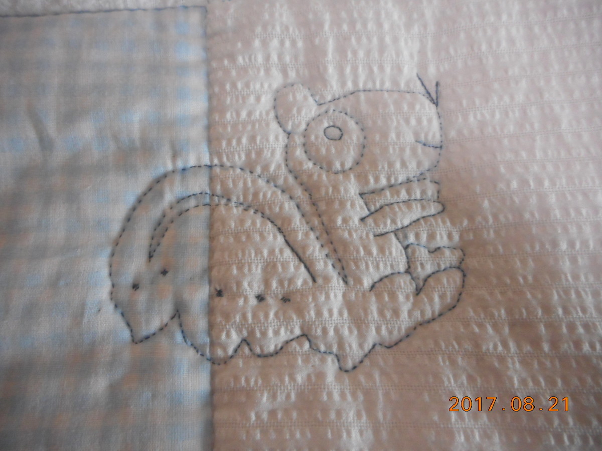ベビー用四角つなぎキルト=可愛いキルティング=リスがとても良いGみさんは素晴らしい