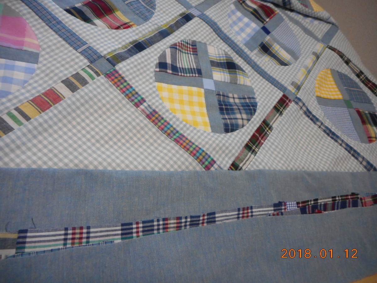チェックと丸のキルト周りもチェックをプラスしました(今日も無事に書けました)
