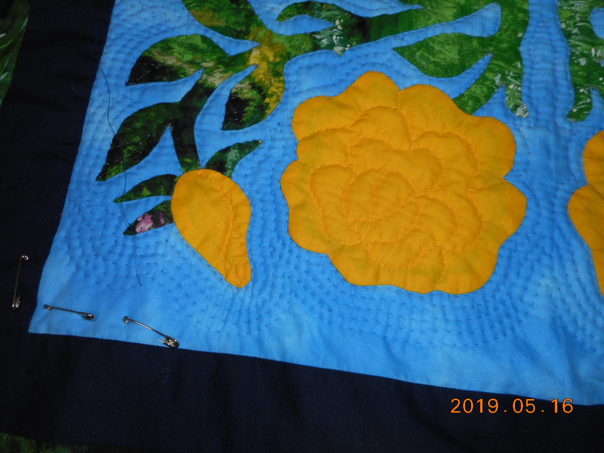 写真はTKOKさんのハワイアンキルト=イエローローズ=細かくウェーブキルト=TKOKさんならではです